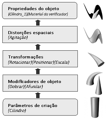 Uma vez que tiver definido um objeto, o 3ds Max avalia as alterações que afetam o objeto base e exibe o resultado na cena. O que estas alterações são, e a ordem na qual eles são avaliadas, é denominado como fluxo de dados de objeto.