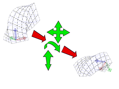 Uma vez que o objeto modificado foi avaliada, ele é transformada dentro do sistema de coordenadas universais. Transforma cobrir a posição, rotação, e escala as alterações aplicadas na transformação de botões na barra de ferramentas.
