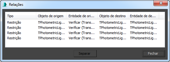 A Vista esquemática suporta várias vistas de lista que exibem objetos e suas relações em uma lista. Essas incluem as vistas de lista para instâncias, ocorrências de objetos e as relações. Utilize essas listas para editar rapidamente a sua conexão de parâmetro, separar as relações ou tornar as instâncias únicas. Utilize as opções da Lista para sincronizar a lista com o viewport ou a exibição de nó na janela de vista esquemática.