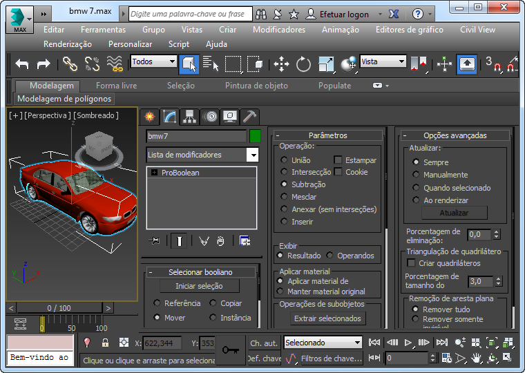 Várias colunas do painel de comando são úteis durante o trabalho com objetos como ProBoolean ou PFlow, que têm muitos controles.