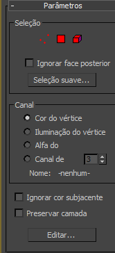Esses controles especificam o tipo de canal a camada de tinta do vértice irá afetar, e qual número de canal do mapa você irá pintar.