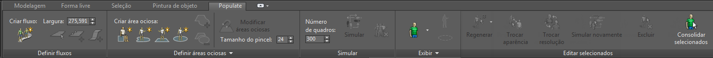 A guia Preencher da faixa de opções de projeto é a mesma que a da guia Preencher na barra das ferramentas de modelagem gráfica.