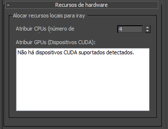 Se o sistema não tem CUDA GPUs, o 3ds Max exibe uma mensagem de que efeito:
