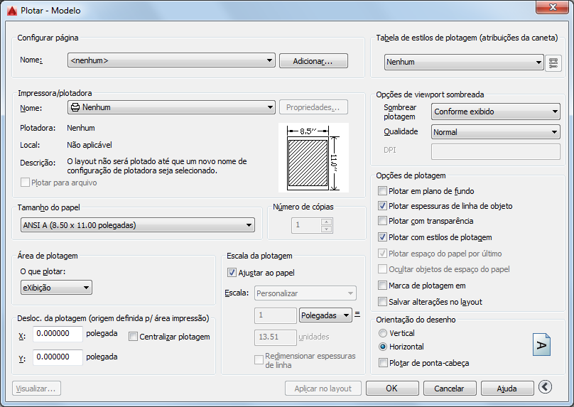 3. Selecione o tamanho do papel, a área de plotagem, a escala de plotagem, a orientação e outras opções.