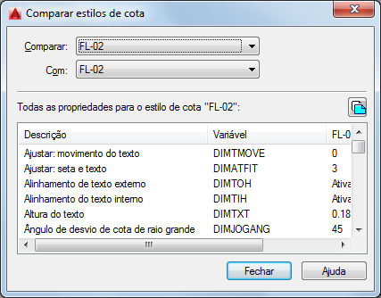 Compara as propriedades de dois estilos de cota ou exibe todas as propriedades de um estilo.