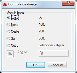 Configura a direção do ângulo zero. As opções a seguir afetam a entrada de ângulos, o formato de exibição e a entrada de coordenadas polares, cilíndricas e esféricas.