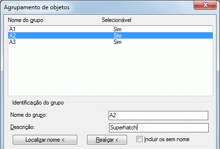 3) Selecione o grupo. Observe que "super-hachura" aparece no campo de descrição dos grupos criados pelo comando SUPERHATCH.
