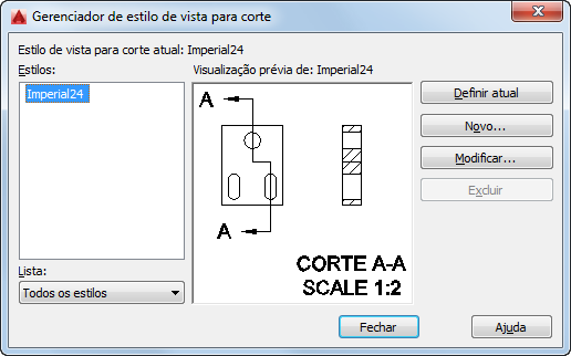 Define o estilo de vista para corte selecionado na lista Estilos como o estilo atual. Todas as novas vistas em corte são criadas usando este estilo de vista para corte.
