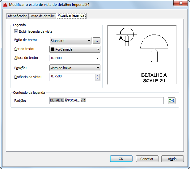 - Especifica o estilo de texto a ser utilizado na legenda de vista de detalhe.