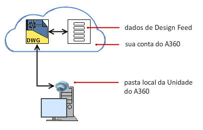 Como alternativa para armazenar arquivos de desenho na sua conta do A360, você pode armazenar localmente em sua unidade de disco rígido do computador. Nesse caso, os dados do design feed para esses desenhos ainda estão armazenados no A360, mas a associação com os dados do design feed é mantida por uma única ID do design feed, um vínculo que é incorporado ao desenho para os dados do design feed.