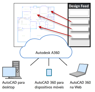A paleta Design Feed fornece um meio de adicionar comentários e imagens a um desenho, que, depois, podem ser compartilhados com colegas, clientes e consultores online através do Autodesk A360.