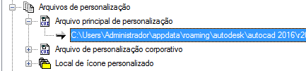 - No Windows Explorer ou no File Explorer, vá até <unidade>:\Users\<nome do perfil do usuário>\AppData\Roaming\Autodesk\<nome do produto>\<número da versão>\<idioma>\support\<nome do arquivo de personalização>.cuix