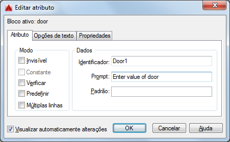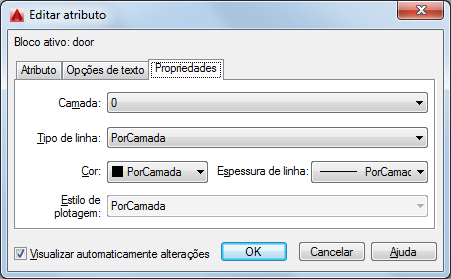 Controla se a área de desenho será imediatamente atualizada para exibir as alterações de atributo visíveis realizadas. Se Visualizar previamente automaticamente as alterações estiver selecionado, as alterações serão imediatamente visíveis. Se Visualizar previamente automaticamente as alterações estiver desmarcado, as alterações não serão visualizadas imediatamente.