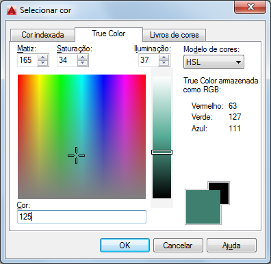 Especifica para utilizar o modelo de cor HSL para a seleção de cores. As opções disponíveis na guia True Color dependem do modelo de cor HSL ou RGB estar especificado.