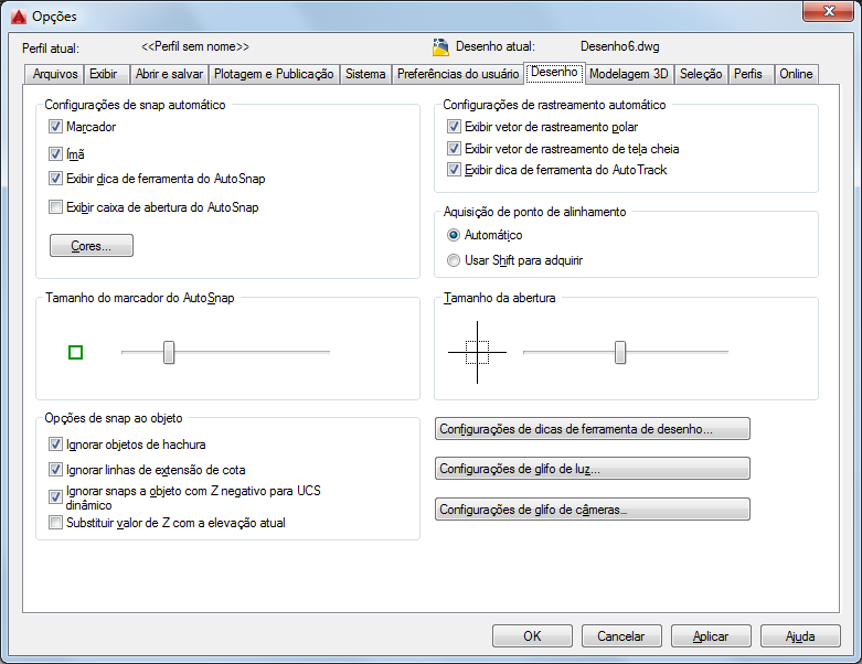 Guia Desenho (Caixa de diálogo Opções)