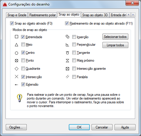 Guia Snap ao objeto (caixa de diálogo Configurações do desenho)