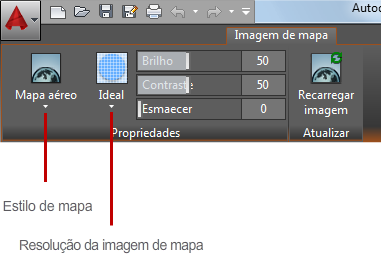 Se estiver conectado ao Autodesk A360, você pode alterar a resolução de imagens do mapa, modificar a extensão, ajustar a opacidade ou atualizá-las para a versão mais recente disponível no serviço de mapas online.