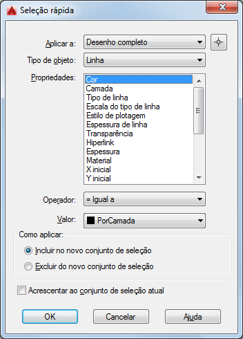 Aplica o critério de filtro a todo o desenho ou ao conjunto de seleção atual (se existir um).