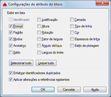Ativa e desativa a ênfase de identificadores duplicados. Se esta opção estiver selecionada, os identificadores de atributo duplicados são exibidos em vermelho na lista de atributos. Se esta opção estiver desmarcada, os identificadores duplicados não são enfatizados na lista de atributos.