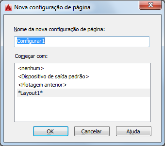 Especifica uma configuração de página para usar inicialmente para Nova configuração de página. Quando você clicar em OK, a caixa de diálogo Configuração da página é exibida com os ajustes da configuração de página selecionada, que pode ser alterada conforme necessário.