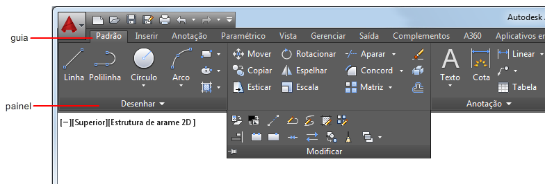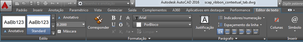 Ao selecionar um determinado tipo de objeto ou executar determinados comandos, uma guia de faixa de opções contextual é exibida, em vez de uma barra de ferramentas ou caixa de diálogo. A guia contextual fecha ao finalizar o comando.