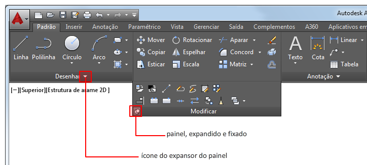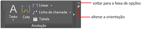 A faixa de opções fornece uma paleta compacta de todas as ferramentas necessárias para criar ou modificar seu desenho. Pode ser colocada nas seguintes posições: