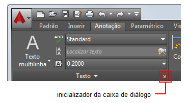 Alguns painéis da faixa de opções fornecem acesso a uma caixa de diálogo relacionada ao painel. Para exibir a caixa de diálogo relacionada, clique no inicializador da caixa de diálogo que é indicado por um ícone de seta, , no canto inferior direito do painel.