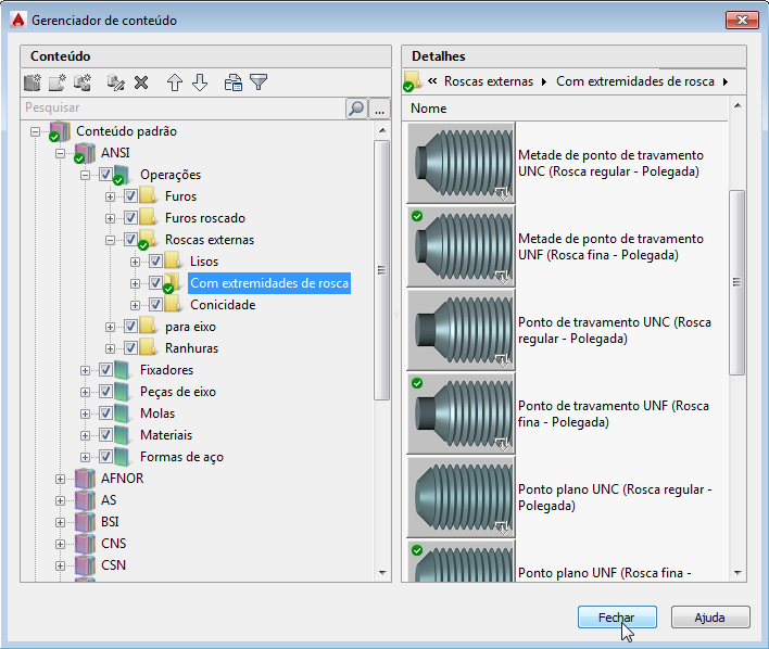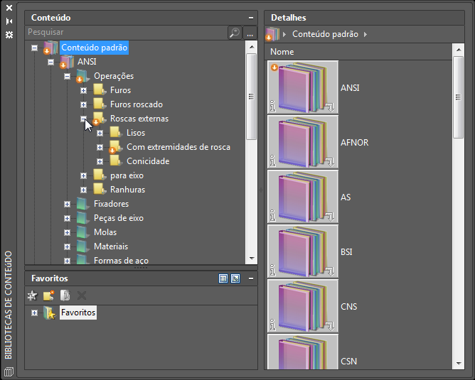 Em alguns casos, devido a uma atualização de biblioteca de conteúdo, a aparência de uma peça ou uma operação padrão que já exista em uma biblioteca de conteúdo pode ser alterada. Normalmente, isso ocorre se a atualização do conteúdo corrige algum defeito. Se já tiver inserido a operação ou peça padrão defeituosa em um arquivo de desenho, você poderá atualizá-la ao clicar duas vezes na área de desenho.
