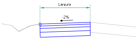 No modo de layout, esta submontagem exibe o acabamento, base e vínculos de sub-base para a largura determinada e profundidades em uma inclinação de -2%.
