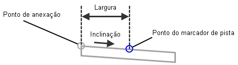 Um vínculo é adicionado do ponto de anexação até a largura especificada e inclinação, no lado especificado. A largura do vínculo é calculada multiplicando o parâmetro da largura da pista pelo parâmetro de localização do marcador da pista. Na outra extremidade do vínculo, um ponto é adicionado ao código especificado.