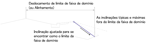 Se a inclinação típica não abranger a ROW (faixa de domínio), uma inclinação mais acentuada será utilizada. Se a inclinação mais acentuada ainda não abranger a ROW, o usuário terá opções de controlar o comportamento.