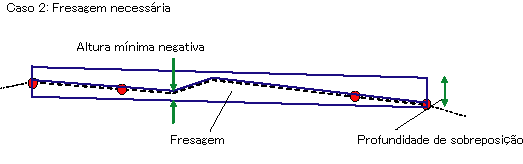 Área acima da superfície existente e abaixo da parte inferior da sobreposição (caso de Fresagem) Esta área sobrepõe a área Sobreposição, conforme mostrado no Diagrama de codificação abaixo. |
