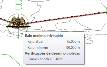 símbolo de aviso é removido da linha Raio da curva, bem como da vista Entidades de alinhamento.