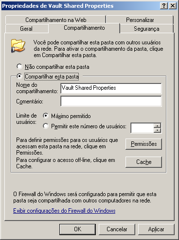 - Na caixa de diálogo Propriedades, clique em Compartilhar esta pasta.
