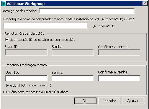 Antes de adicionar um grupo de trabalho, assegure-se de que o servidor do SQL pode se comunicar com o servidor do Vault sem intereferência do firewall. Isso pode ser feito permitindo uma exceção para os arquivos executáveis do SQL, sqlbrowser.exe e sqlserver.exe.