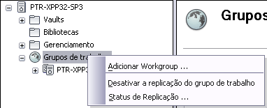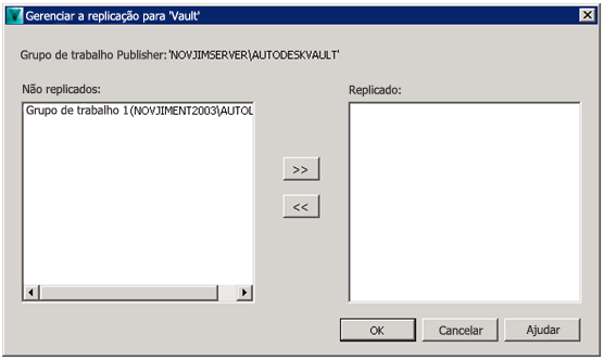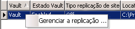 Após um grupo de trabalho conectado ter sido configurado, a última etapa é ativar os Vaults que serão replicados. Esta configuração é possível com a ferramenta Gerenciar replicação.