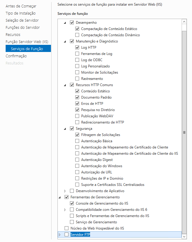 - Na seção Funções do servidor, selecione as seguintes funções: