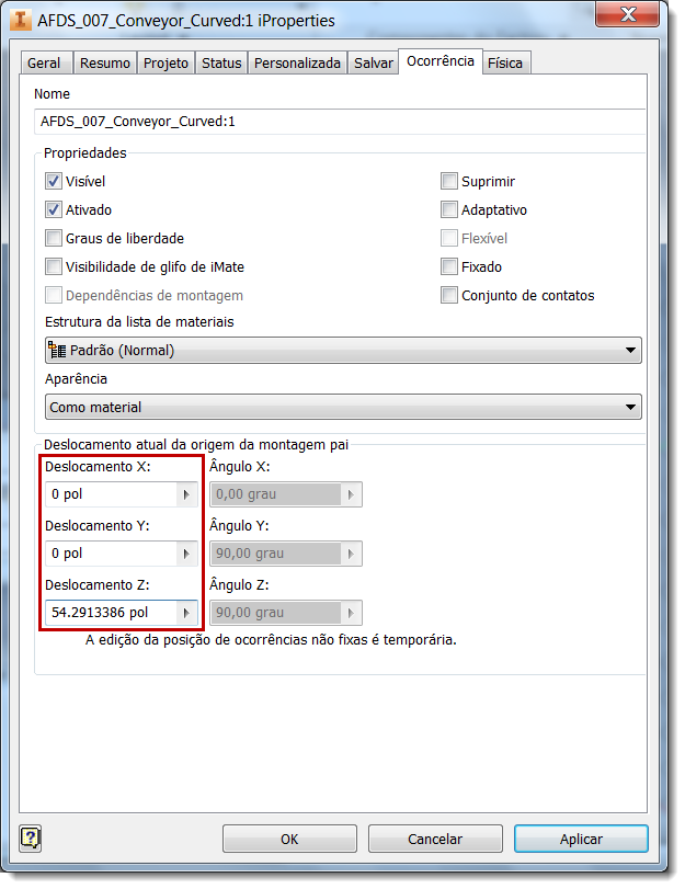 Nota: O Deslocamento Z representa a superfície do patamar que você selecionou; logo, ela não precisa ser alterada.