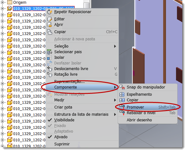 - Localize uma montagem no navegador Modelo, clique com o botão direito e selecione Abrir.