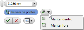 Nota: A despeito de qual Manter opção estiver selecionada, mantém a nuvem de pontos sempre que aparecer em cinza (a cor original da nuvem de pontos). Pontos a serem removidos são exibidos em uma cor diferente. A cor é determinada pelo esquema Inventor atual de cores em uso.
