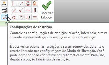 Todas as configurações relacionadas a restrições de esboços 2D foram reorganizadas em um só novo comando denominado Configurações de restrição.