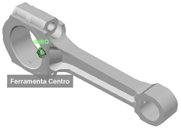 Para definir o centro, arraste o cursor sobre o modelo. Além do cursor, uma esfera é exibida. A esfera indica que o ponto abaixo do cursor no modelo é o centro da vista atual. Quando você soltar o botão do mouse, o modelo é centralizado na esfera.