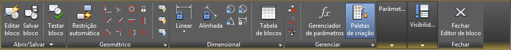 Uma nova guia chamada Editor de bloco aparece na faixa de opções e um novo desenho é aberto no Editor de bloco.