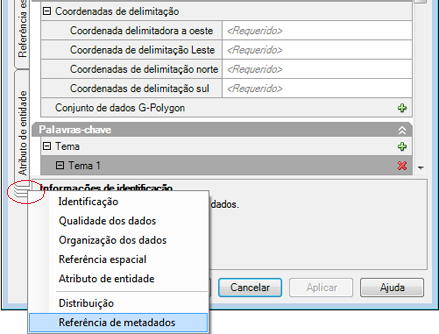 , para atualizar a partir da origem de dados, usar modelos, copiar e colar, ou importar de origens similares, alguns dados devem ser inseridos manualmente. O editor de metadados (FGDC ) proporciona uma interface para inserir e administrar os metadados.
