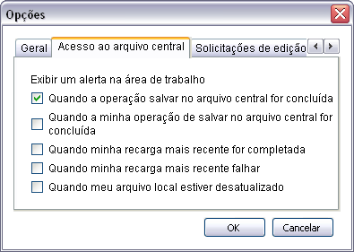 Selecione uma opção para indicar se deseja receber alertas na área de trabalho sobre problemas no arquivo central. Desmarque uma opção para evitar receber alertas na área de trabalho.