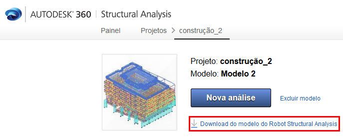 (Download do modelo do Robot Structural Analysis) na coluna Análise.