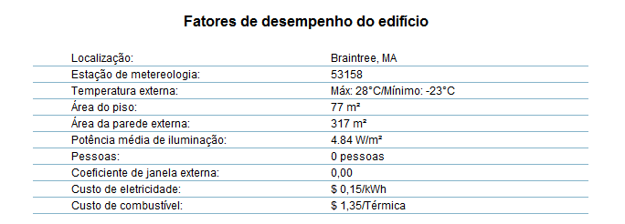 O valor padrão aplicado no modelo analisado tem base nos requisitos mínimos de eficiência para o código de energia ASHRAE 90.1. O valor padrão varia por tipo de construção, como escolas ou lojas de varejo.