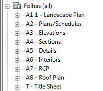 No Revit cria-se uma vista de folha para cada folha em um conjunto de documentos de construção. Em seguida, é possível colocar múltiplos desenhos ou tabelas em cada vista de folha.