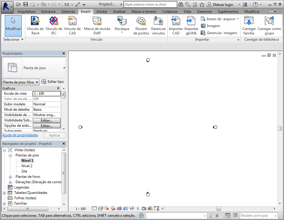 As outras vistas ainda estão abertas, mas estão sob a vista atual. Utilize as ferramentas da guia Vistapainel Janelas, para organizar as vistas do projeto para se adequar ao seu estilo de trabalho.