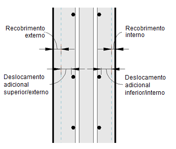 Deslocamento adicional de cobertura superior/interna | Especifica um deslocamento adicional da recobrimento do vergalhão inferior/interno. Isto permite colocar múltiplos elementos de vergalhão juntos em diferentes camadas de armadura de área. |